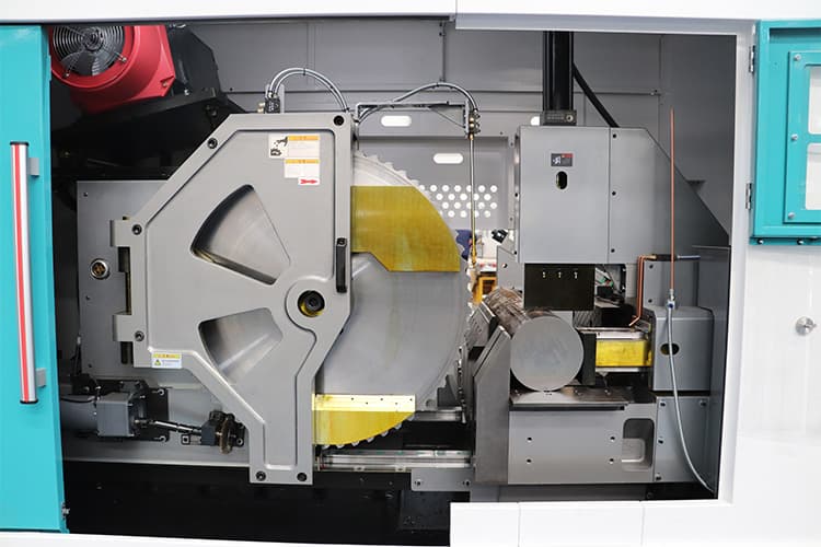 WL-300PZ采用TCT超硬鋸片與HSS高速鋼鋸片雙模式配置,支持連續高速切割,生產效率可達傳統帶鋸床的2倍以上。其三點式夾持技術與主動偏擺送料系統,確保大直徑工件(如Φ300mm以上金屬棒材)的穩固夾持與精準切斷,減少材料損耗與返工率。